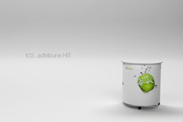 Promo pult HIT je moderan, kompaktan i izdržljiv reklamni alat za različite promocije. Stabilna i složljiva konstrukcija je upotrebna za prijenos, jednostavno postavljiva sa nosivosti do 100 kg. Namještena kola omogućavaju priručno kretanje, tisak je uključen. Idealno za degustacije, promocije i sajmove. Modernog oblika, jedinstven na tržištu.