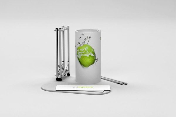 Ukupna masa proizvoda je prilagođena sastavljanju na terenu, cijelokupna konsturkcija se spakira u priloženu prijenosnu torbu. Inovativna tehnička rješenja te materijal za tisak najviše kvalitete vam pruža postojanost i dugotrajnu upotrebu. Grafika se prićvrsti na konstrukciju sa čičkom, jednostavno je zamjenljiva i može se naručiti posebno.