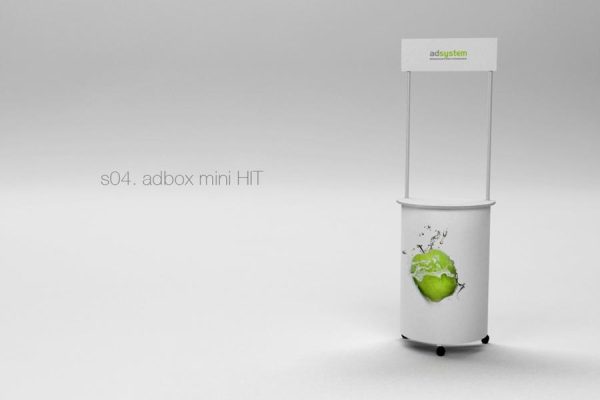Promo stol MINI HIT je kompaktan i izdržljiv reklamni alat za različite promocije. Stabilna i složljiva konstrukcija je upotrebna za prijenos, jednostavno postavljanje sa nosivosti do 100 kg. Namještena kola omogućavaju priručno kretanje, tisak je uključen. Idealno za degustacije, promocije i sajmove. Modernog oblika, jedinstven na tržištu. Odličan za promocije sa ograničenim prostorskim mogućnostima.