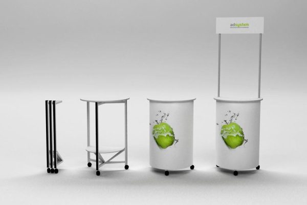 Izuzetno priručna za mjesta, gdje su prostorska ograničenja. Kompletna konstrukcija se sklopi u prijenosnu torbu. Zbog kompaktnih dimenzija i manje teže je presavijeni stalak jednostavan za prevoz do drugog mjesta promocije. Visokokvalitetni materijali i tehnička rješenja, koja se upotrebljavaju kod proizvodnje, pružaju strukturnu postojanost i mogučnost ponovne upotrebe. Grafika se lako mijenja.