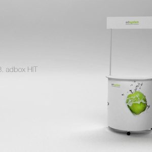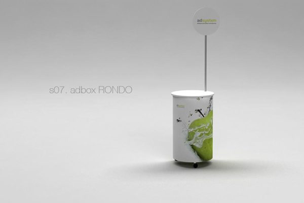 Promocijski stol RONDO je kompaktan i izdržljiv reklamni alat za različite promocije. Stabilna i složljiva konstrukcija je upotrebna za prijenos, jednostavno postavljiva sa nosivosti do 100 kg. Namještena kola pružaju priručno kretanje, tisak je uključen. Idealna za degustacije, promocije i sajmove. Moderan oblik, jedinstven na tržištu. Odlična za promocije sa spomenutim prostorskim mogučnostima.