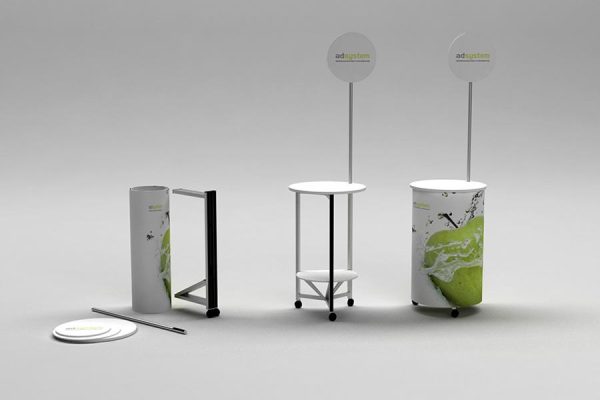Osobito priručan za mjesta, gdje su prostorska ograničenja. Kompletna konstrukcija se sklopi u prijenosnu torbu. Visokokvalitetni materijali i tehnička rješenja, koja se upotrebljavaju kod proizvodnje omogućavaju strukturnu postojanost i mogučnost višekratne upotrebe. Grafika se lako mijenja.