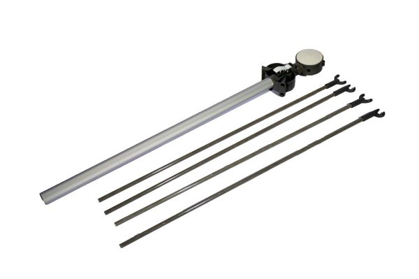 Konstrukcija je pakirana u prenosljive torbe, transport grafike se uredi posebno. Stalak je dostupan u jednostranskoj i dvostranskoj izvedbi.